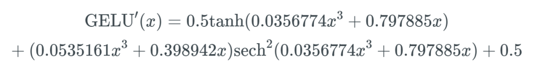 微分的GELU函数: