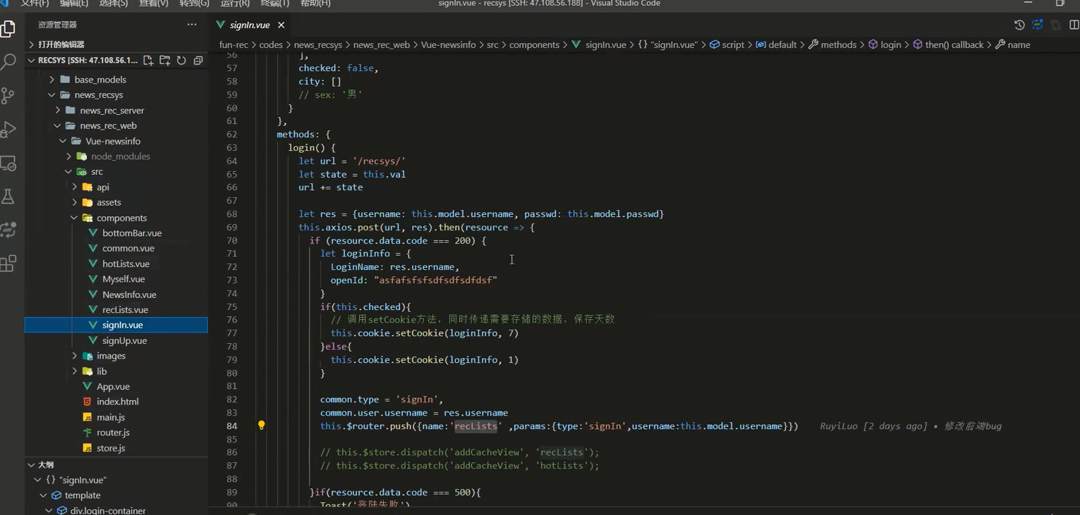 绑定的函数通过 flask 路由,根据当前的这个 URL 实现它要处理的具体逻辑,比如说现在是获取推荐列表(上一步reclist.vue里面的推荐列表)